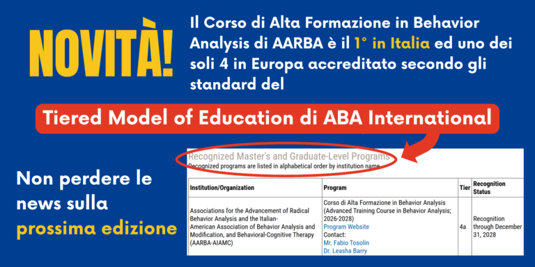 Sei nel posto giusto se ti interessa l’Applied Behavior Analysis (ABA). In particolare se cerchi corsi di formazione in analisi del comportamento applicata agli ambiti dell’Autismo e della Clinical Behavior Analysis, ma anche dell’Organizational Behavior Management (OBM) – per quanto riguarda sicurezza, produzione, leadership e qualità. Questa è la casa della Behavior-Based Safety (B-BS), del Performance Management (PM).